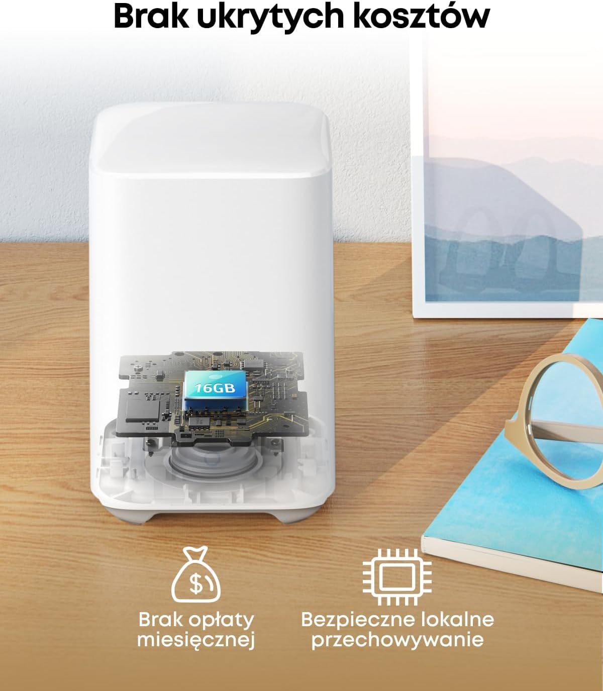 Szeroki kąt widzenia i długi czas pracy. Kamera oferuje pole widzenia 135° po przekątnej, co pozwala dokładnie obserwować zarówno przestrzeń wokół domu, jak i jego otoczenie. Dzięki wydajnej baterii urządzenie może działać nawet do 180 dni na jednym ładowaniu, eliminując konieczność częstego podłączania do zasilania.