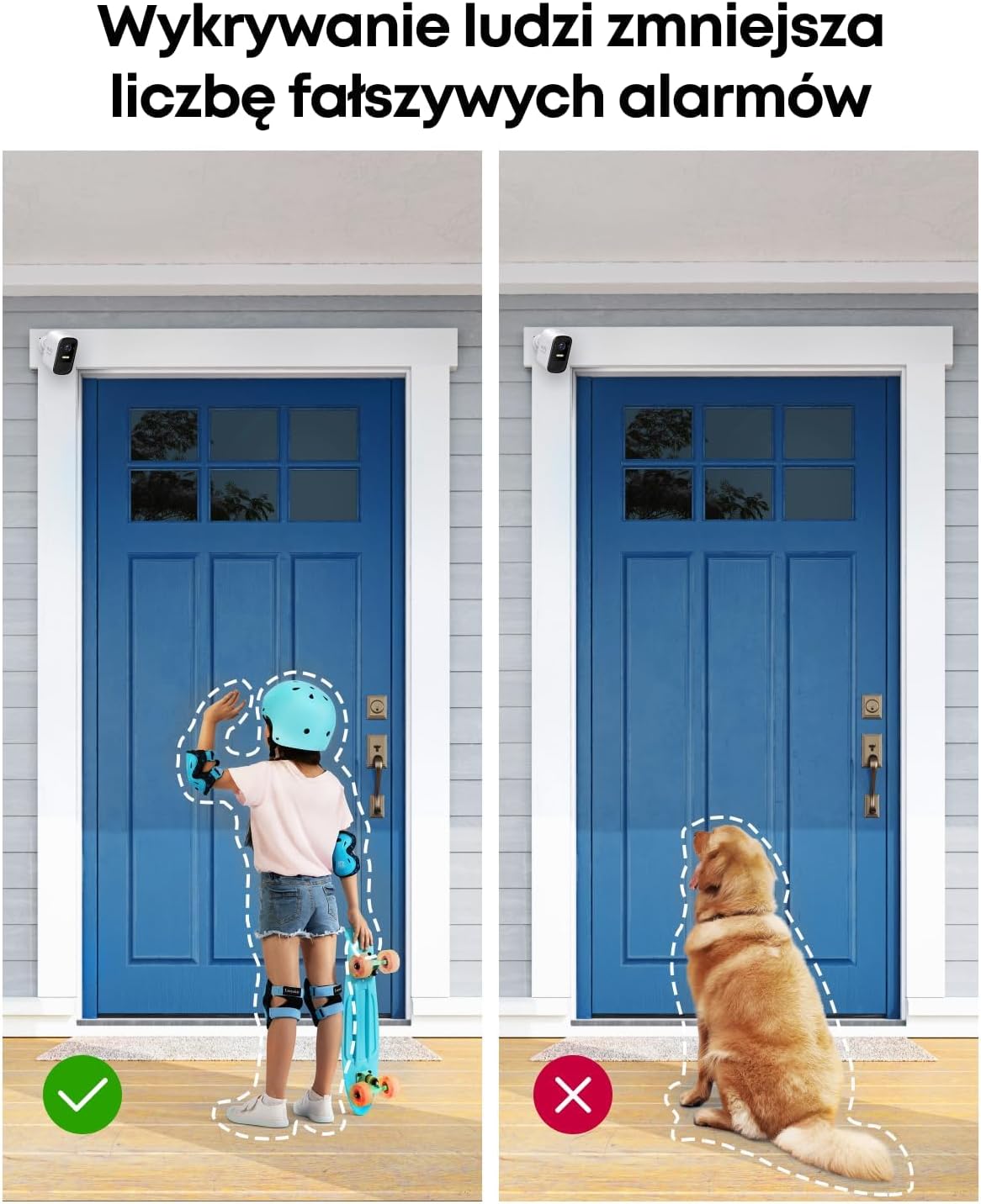 Inteligentne powiadomienia technologia wykrywania osób analizuje sylwetkę i rysy, dzięki czemu kamera rozróżnia ludzi od zwierząt czy innych ruchomych obiektów. Otrzymujesz alerty tylko wtedy, gdy faktycznie ktoś zbliża się do Twojego domu, co ogranicza liczbę fałszywych powiadomień.