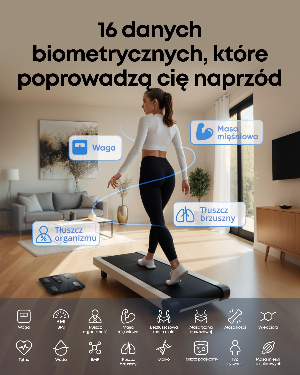Waga oferuje sześć trybów: normalny, prosty, gość, dziecko / zwierzę i sportowiec. Obsługuje nieograniczoną liczbę użytkowników – idealny dla rodzin i grup fitness.