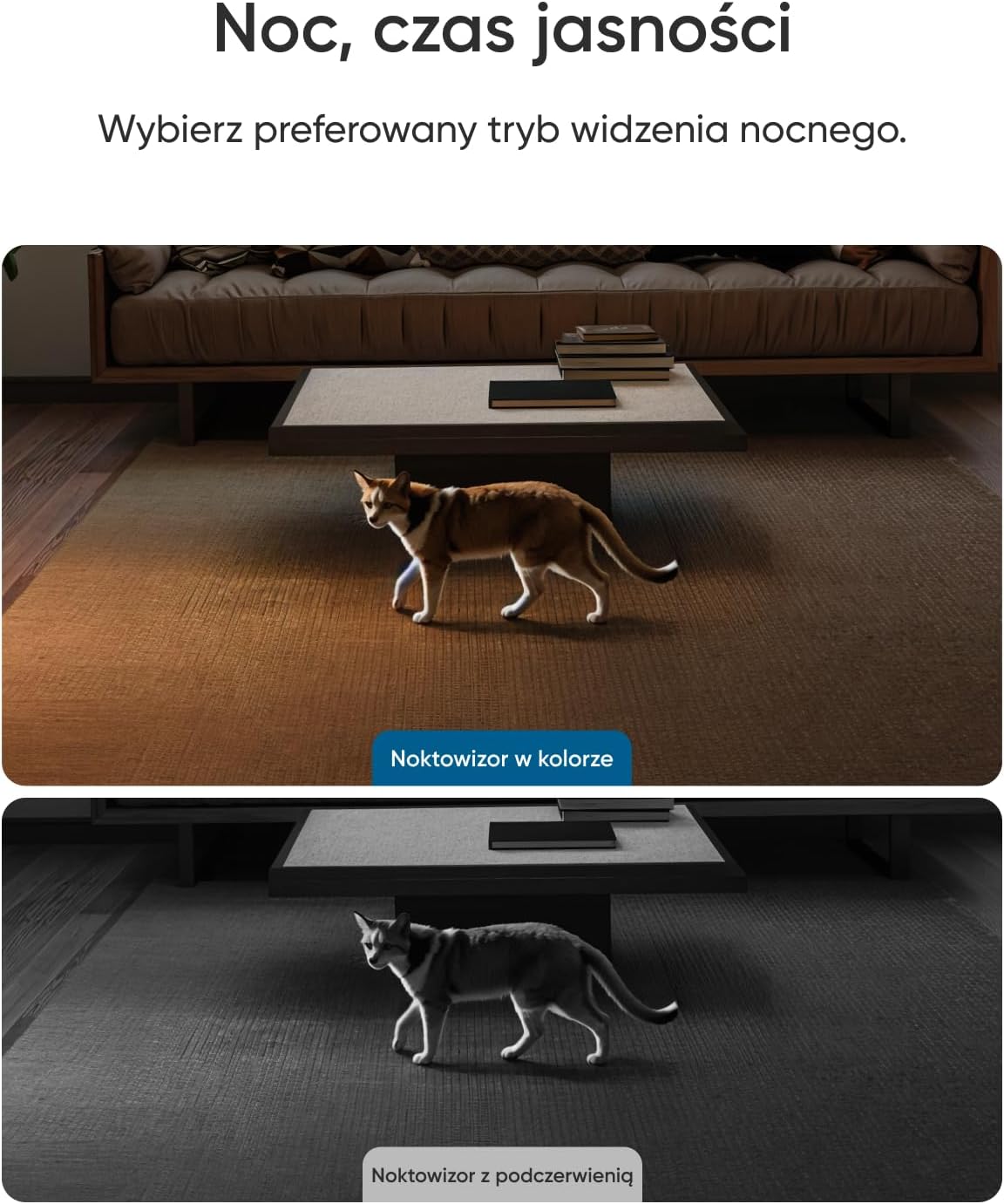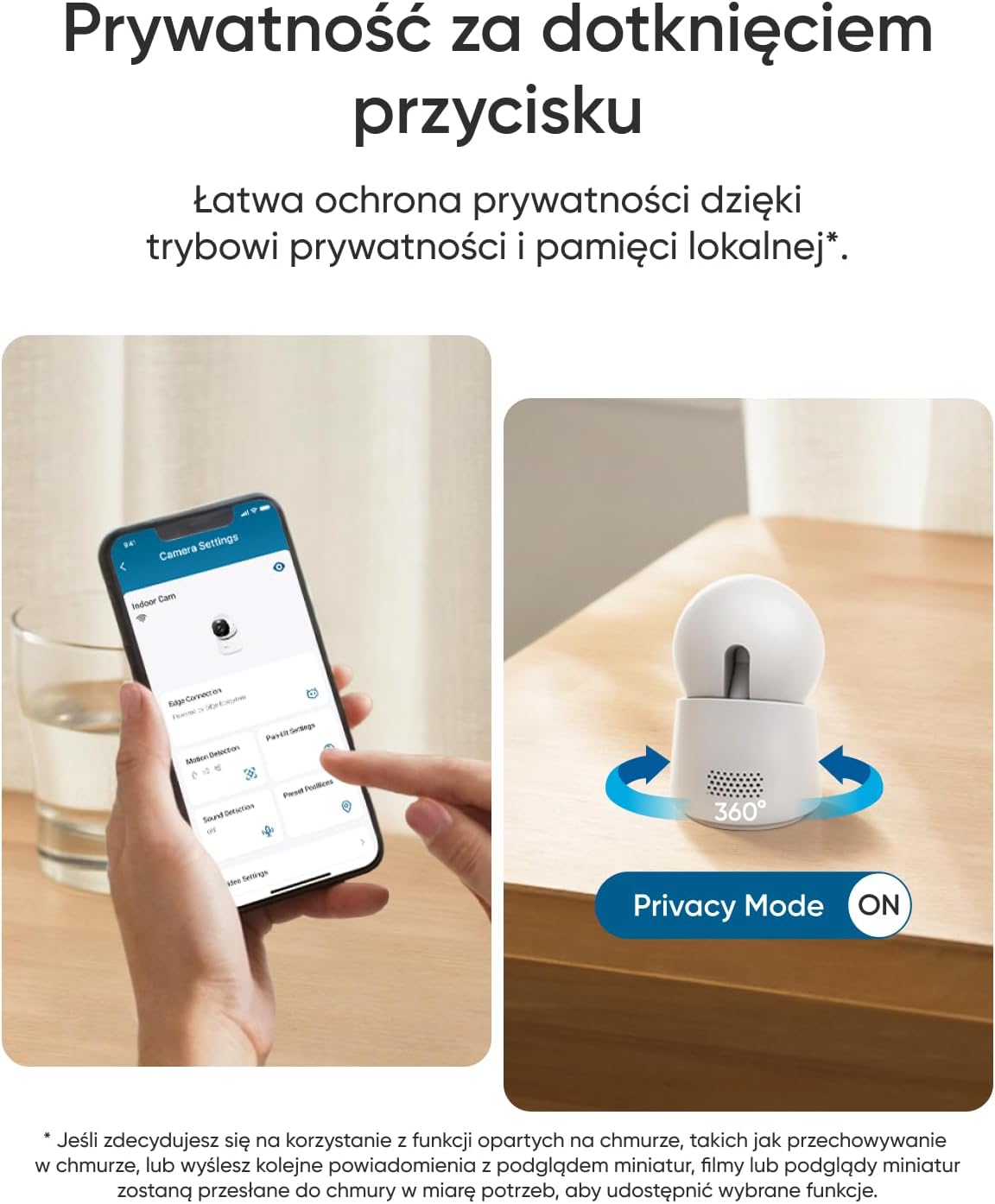 | Wykrywanie AI | Ruch, Ludzie, Zwierzęta domowe, Dźwięk, Płacz dziecka |
