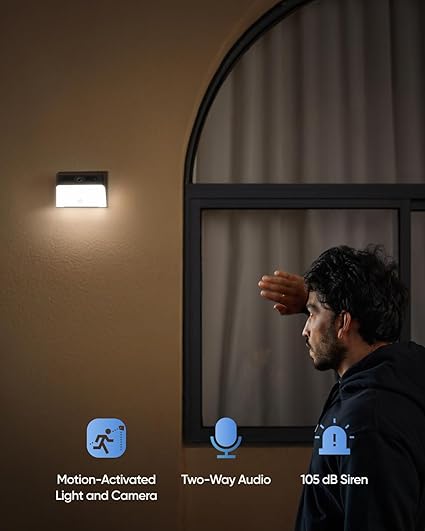 Kinkiet i kamera słoneczna 2 w 1. Płynnie zintegrowana kamera i światło umożliwiają monitorowanie domu w dowolnym momencie i oświetlanie przestrzeni jasnością 300 lumenów.