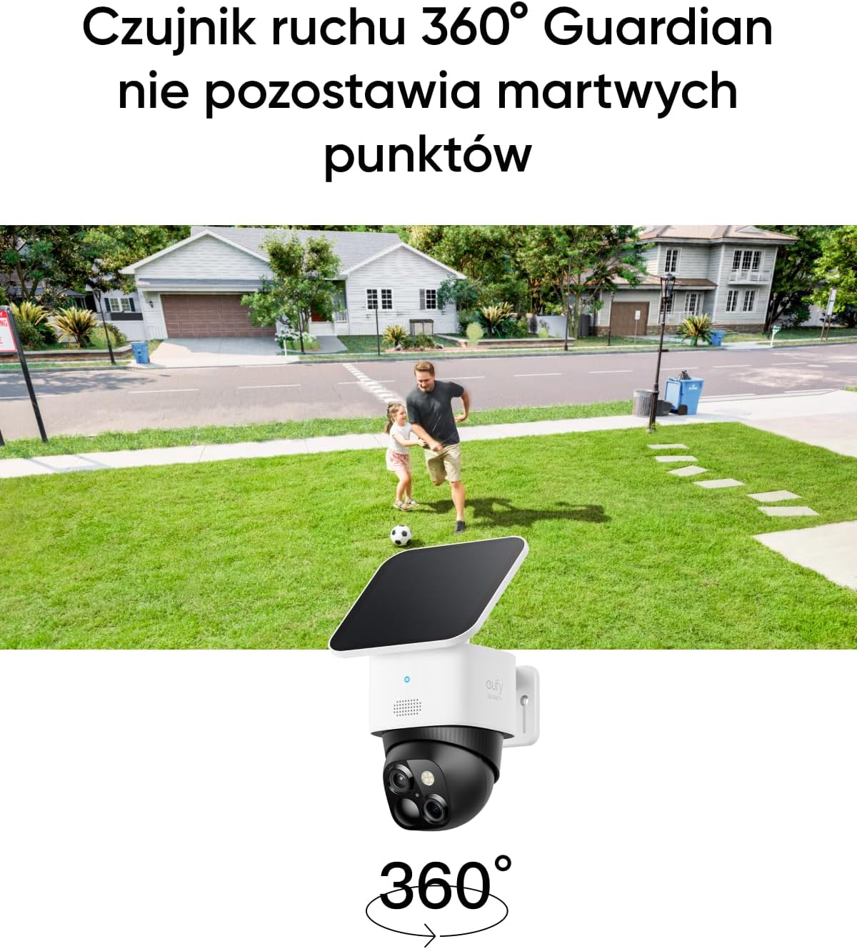 Ochrona 360°, brak martwych punktów. Pożegnaj martwe punkty dzięki pełnemu pokryciu domu. Korzystaj z nadzoru 360°, sprawdzaj werandę, monitoruj podwórko i z łatwością kontroluj pojazdy.