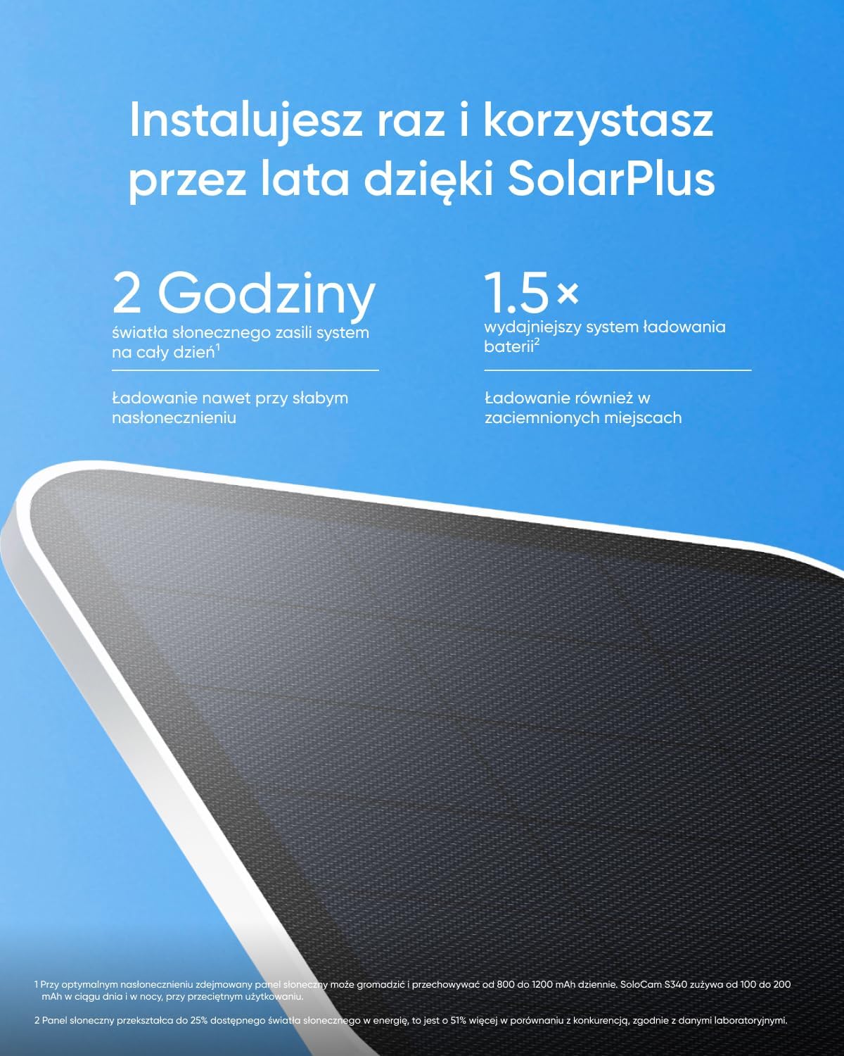 | Panel słoneczny | 2,2 W, odłączany i regulowany |