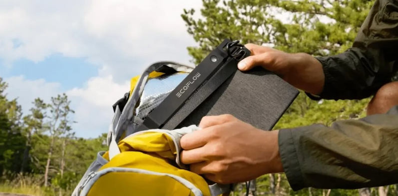 EcoFlow 28W został zaprojektowany z myślą o maksymalnej mobilności i wygodzie użytkowania. Po złożeniu zajmuje niewiele miejsca, a dzięki wadze około 0,6 kg oraz kompaktowym wymiarom 291 × 177 × 18,6 mm z łatwością zmieści się w plecaku czy torbie, stając się idealnym towarzyszem wędrówek, biwaków i codziennych podróży. Po rozłożeniu panel osiąga wymiary 291 × 664 × 2 mm, znacząco zwiększając powierzchnię aktywną i umożliwiając efektywne wykorzystanie energii słonecznej. Dołączone karabińczyki pozwalają wygodnie przymocować go do plecaka, namiotu lub innej stabilnej powierzchni, co ułatwia ładowanie w trakcie przemieszczania się.