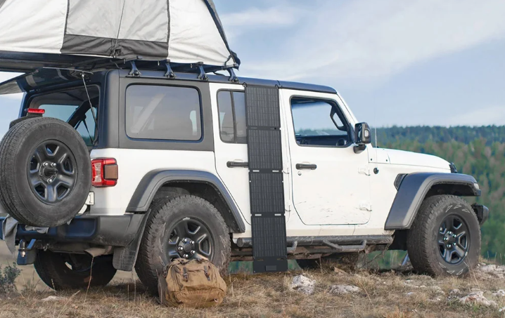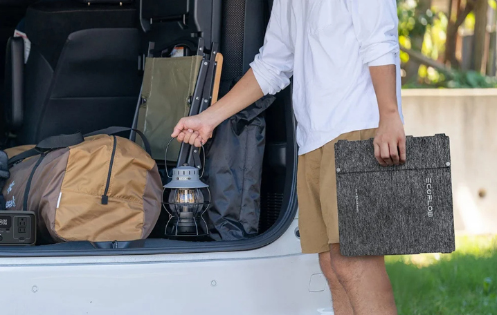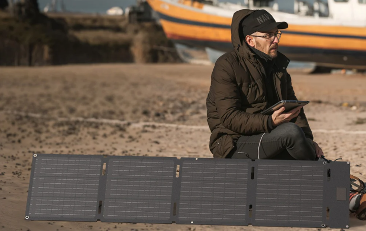Czteroczęściowa konstrukcja ułatwia szybkie składanie i rozkładanie panelu, co przekłada się na wygodny transport i przechowywanie. Po złożeniu urządzenie ma rozmiar zbliżony do laptopa, dzięki czemu bez problemu zmieści się w plecaku, bagażniku SUV-a czy schowku w kamperze. Niewielka waga – zaledwie około 2 kg – sprawia, że panel nie stanowi dodatkowego obciążenia podczas podróży i świetnie sprawdza się w terenie.