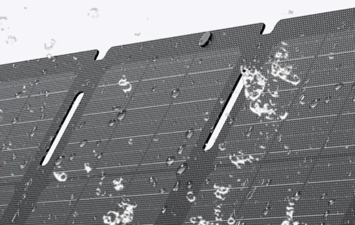 Obudowa panelu została wykonana z wytrzymałej warstwy ETFE (Ethylene Tetrafluoroethylene), czyli odpornej na promieniowanie UV i czynniki atmosferyczne folii fluoropolimerowej, oraz wzmocnionej konstrukcji z włókna szklanego PCB (Printed Circuit Board), stosowanej w elektronice dla zapewnienia stabilności i trwałości. Takie połączenie materiałów zapewnia wysoką odporność na uderzenia, podmuchy wiatru oraz kontakt z wodą. Certyfikat IP68 potwierdza pełną ochronę przed pyłem oraz odporność na zanurzenie w wodzie, dzięki czemu panel sprawdzi się nawet w wymagających warunkach terenowych i podczas dłuższych wypraw.