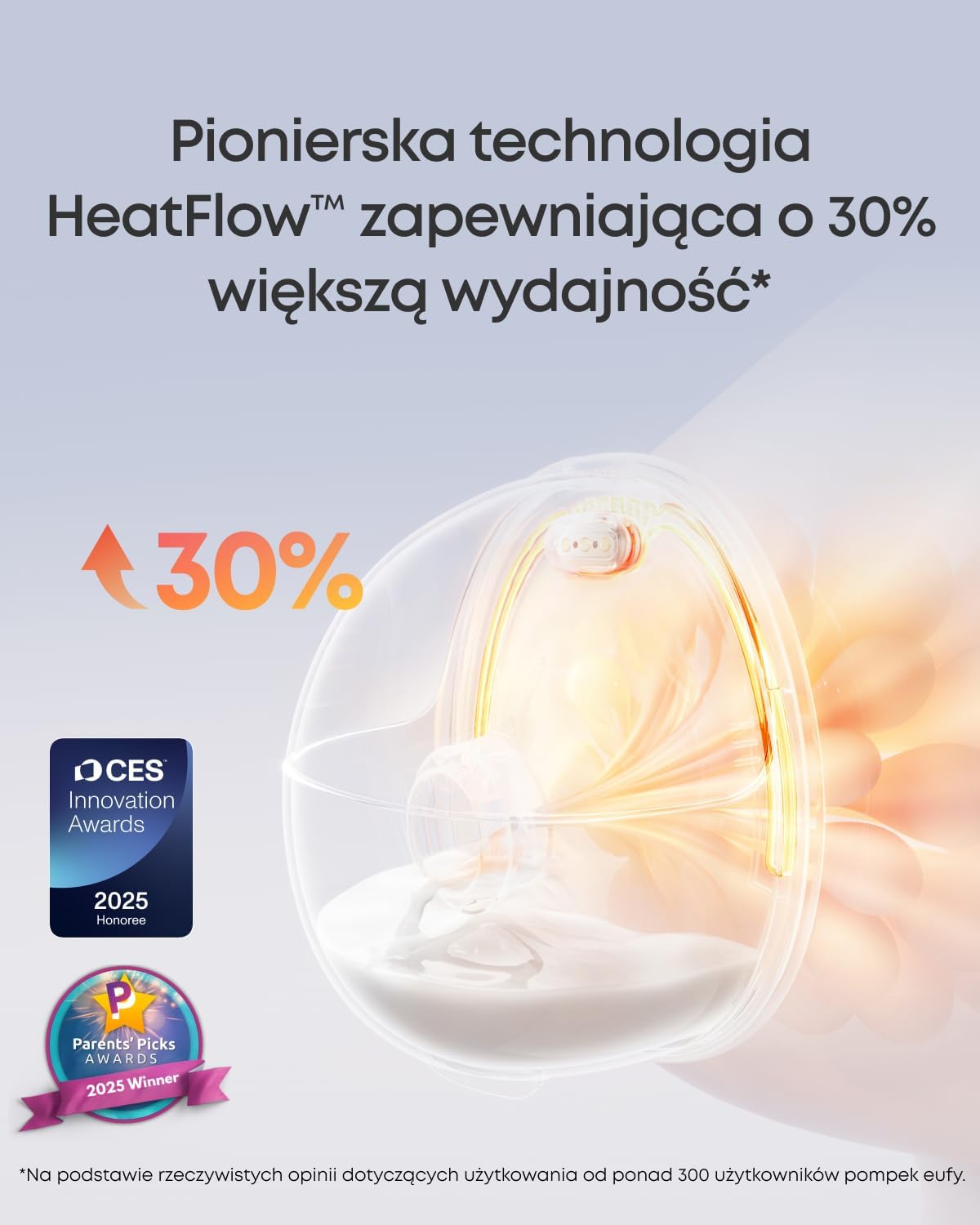 Jedyny przenośny laktator z funkcją podgrzewania. Nasza innowacyjna technologia przepływu ciepła ze zintegrowanym elementem grzewczym i precyzyjnym czujnikiem temperatury zapewnia równomierne rozprowadzanie ciepła dzięki miękkiemu silikonowi. Siedem regulowanych ustawień temperatury (od 35°C do 41°C) wspomaga przepływ mleka i zapobiega jego zatorom. Ciesz się naturalnym uczuciem odciągania pokarmu, które stawia komfort na pierwszym miejscu.