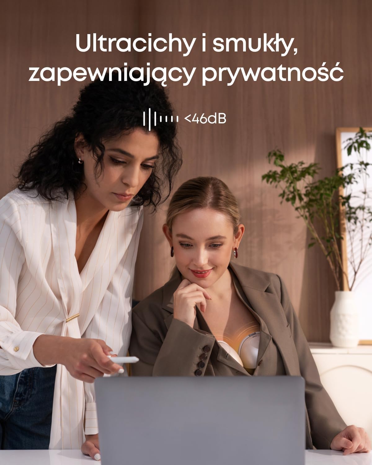Dyskretne odciąganie pokarmu zapewniające prywatność. Kompaktowy i lekki dla łatwego użytkowania w biustonoszu, z niekapiącą konstrukcją i podwójnym uszczelnieniem, pracuje z ultracichą głośnością 46dB dla dyskretnego stosowania.