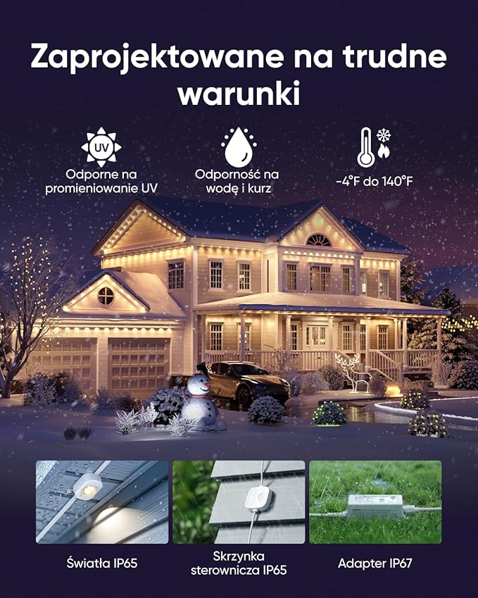 GWARANTOWANA TRWAŁOŚĆ – Łańcuch świetlny i sterownik są odporne na promieniowanie UV i zapewniają stopień ochrony IP65 przed wodą i pyłem. Adapter IP67 zapewnia niezawodne działanie w każdych warunkach pogodowych i temperaturach od -20°C do 60°C. Żywotność baterii wynosi ponad 55 000 godzin.